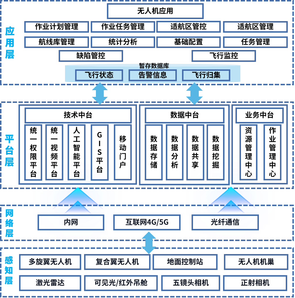 In order to promote the intelligent and automated application of UAVs in different industries, Zhiyang Innovation implements deep integration of business scenario needs of customers in different industries, and on the basis of artificial intelligence, big data analysis and other technologies, realizes the whole process management, including operation plan management, task management, flight monitoring, defect and hidden danger management and control, intelligent analysis and early warning, etc.,  effectively improves the O&M efficiency in various industries, provides support for the digital O&M construction in all aspects, and effectively implements the modern equipment management system.